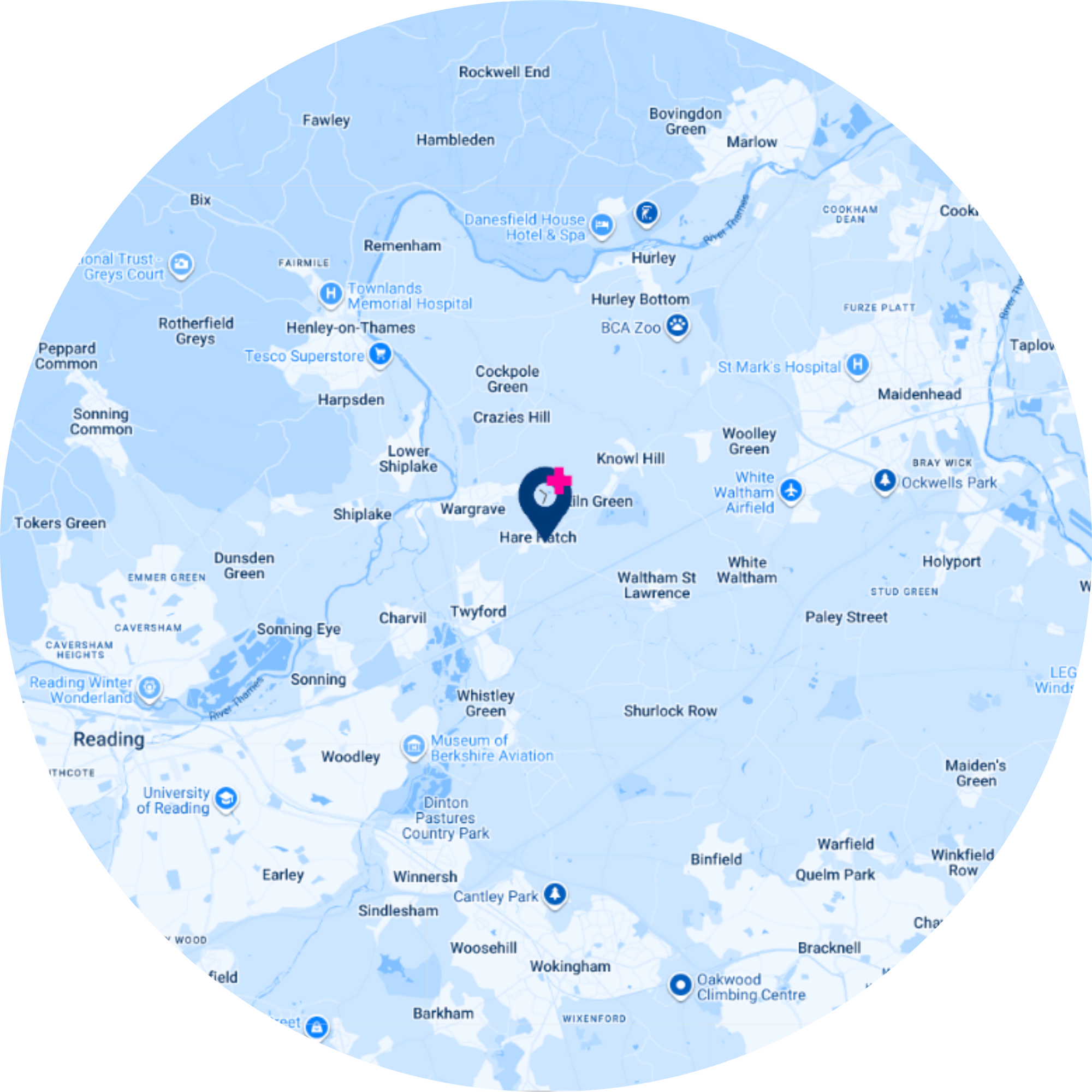 Windsor, Ascot, Winkfield, Fawley, Sonning Common, Hambleden, Rotherfield Peppard